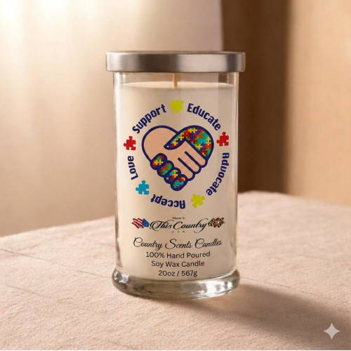 Pick the scent from the dropdown menu. 10% of each Candle sold will be donated to the Autism Speaks Charity.